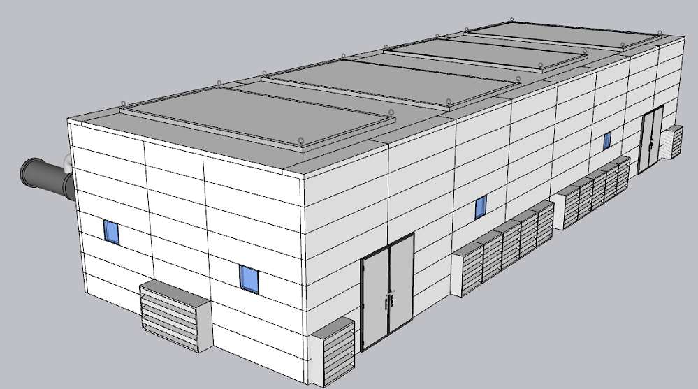 根據(jù)上海噪聲治理公司世創(chuàng)陽安現(xiàn)場實測數(shù)據(jù)、噪聲情況分析和設(shè)計依據(jù)及治理目標(biāo),結(jié)合經(jīng)濟(jì)性、可靠性和實用性,設(shè)計此方案。采用隔聲罩的方案進(jìn)行治理。由于設(shè)備噪聲較高,距離敏感區(qū)域較近,因此必須采用隔聲罩的方案。隔聲罩以鋼結(jié)構(gòu)為框架,強(qiáng)排風(fēng)措施,進(jìn)風(fēng)百葉消聲器、隔聲檢修門、可拆卸頂、觀察窗和吸隔聲模塊主材組成。隔聲罩為模塊式結(jié)構(gòu),后期拆卸后再安裝,以便于設(shè)備的大檢修。