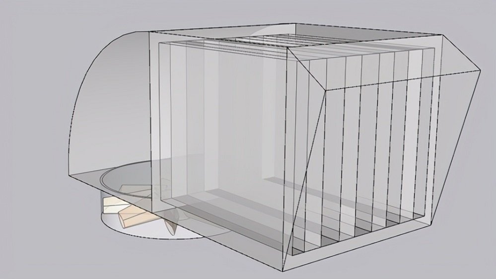 設(shè)置4個排風(fēng)口,在排風(fēng)口處增加強(qiáng)排風(fēng)措施,保證隔聲罩的換熱次數(shù),選用4臺12000 m3/h的風(fēng)機(jī)。排風(fēng)消聲器由0.5m排風(fēng)導(dǎo)流段+1.5m消聲段組成,截面為0.96平方米,設(shè)計排風(fēng)風(fēng)速7m/s。消聲段采用PY-10型片式消聲器,設(shè)計消聲量20dB。消聲器采用PY-10型片式消聲器,外殼由鍍鋅板+吸音材料(防火憎水布包裹)+吸音孔板(鍍鋅板才材質(zhì))組成,插片由吸音孔板(鍍鋅板才材質(zhì))+吸音材料(防火憎水布包裹)+吸音孔板(鍍鋅板才材質(zhì))組成防雨式設(shè)計,所有外表面烤漆處理。
