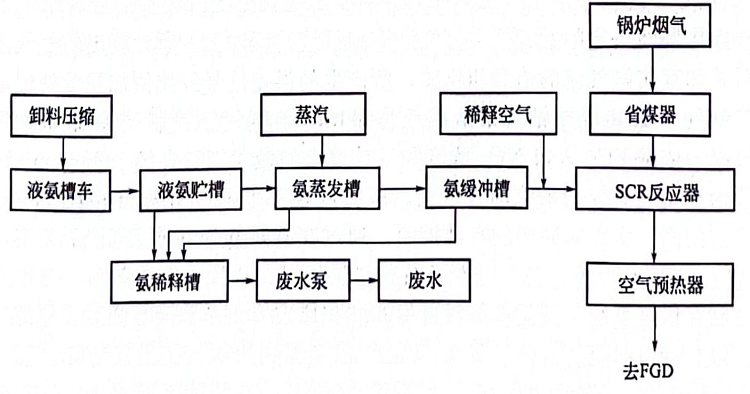 脫硝裝置由SCR反應(yīng)器系統(tǒng)和氨貯存供應(yīng)系統(tǒng)兩部分組成。