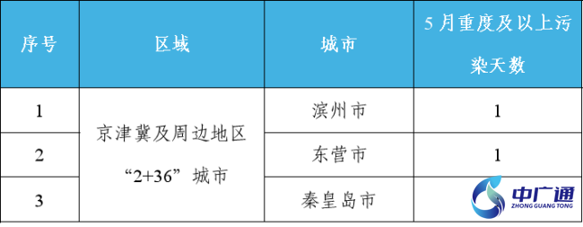 5月重點區(qū)域出現(xiàn)重度及以上污染天的城市及具體天數(shù)見附表3。